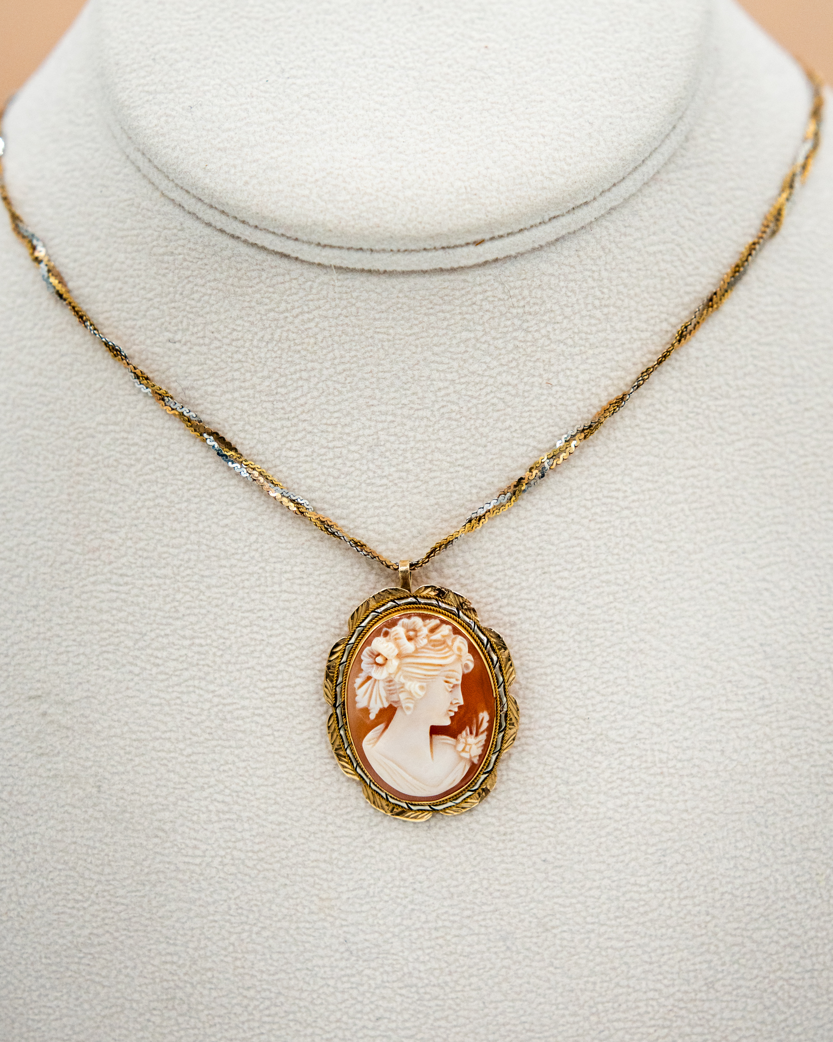 White & yellow gold with a reclaimed vintage braided chain.
